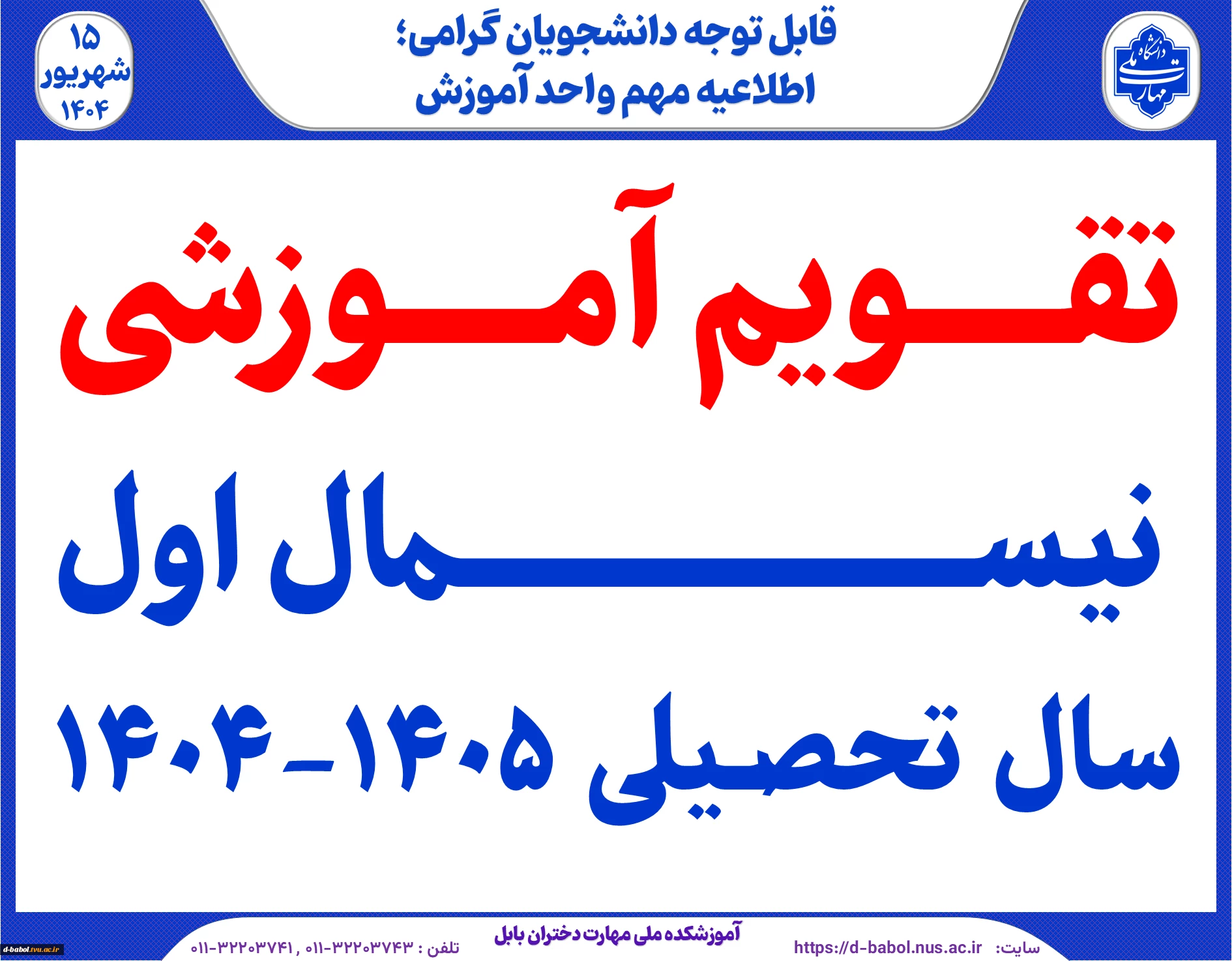 تقویم آموزشی نیسمال اول سال تحصیلی 1405-1404 2