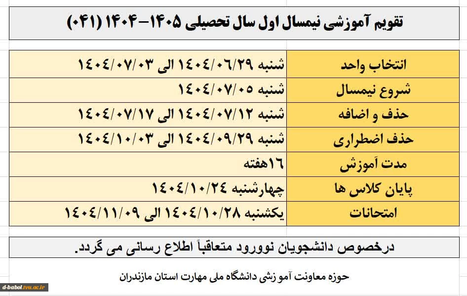 تقویم آموزشی نیسمال اول سال تحصیلی 1405-1404