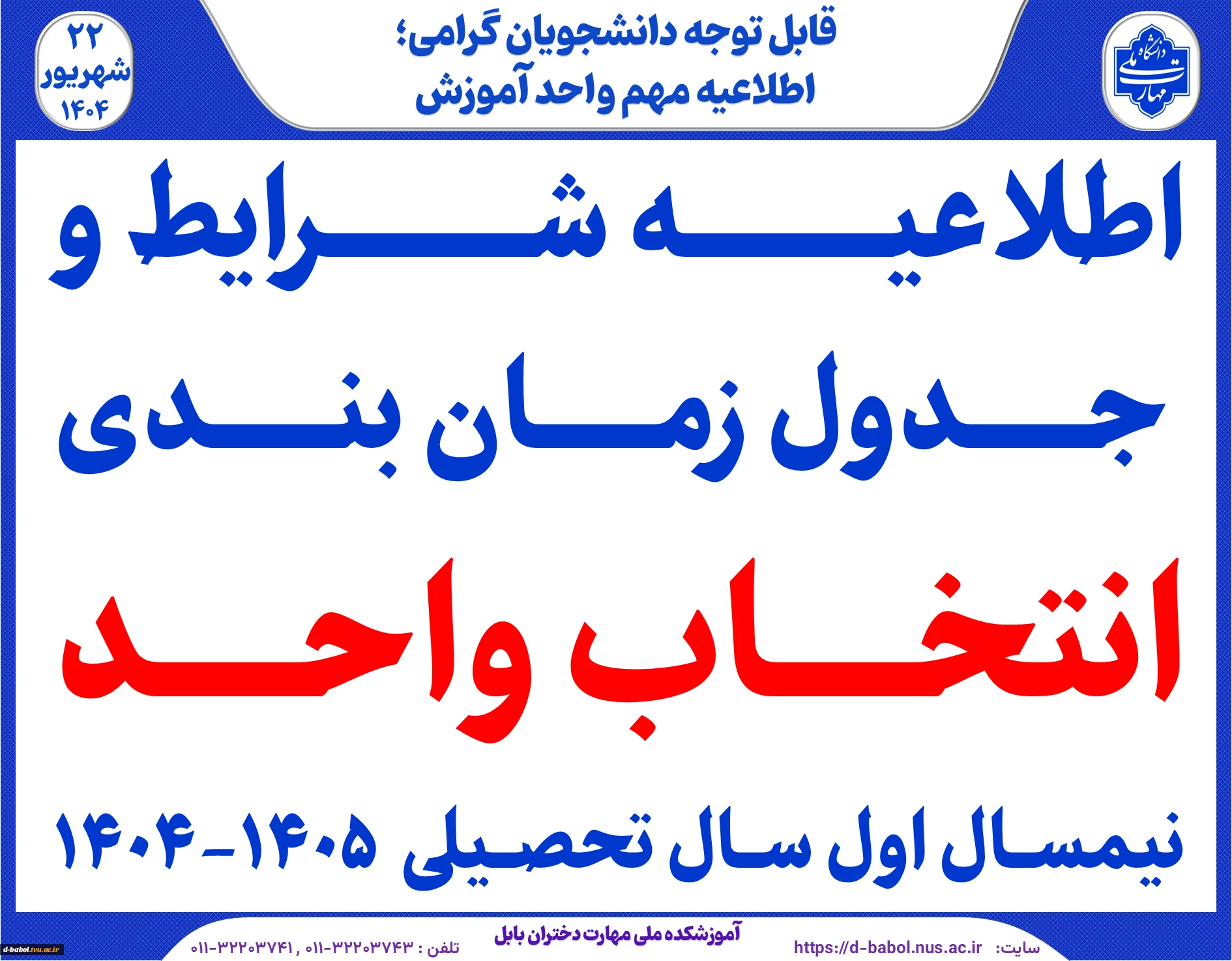 اطلاعیه شرایط و جدول زمانبندی انتخاب واحد  نیمسال اول سال تحصیلی  1405-1404 2