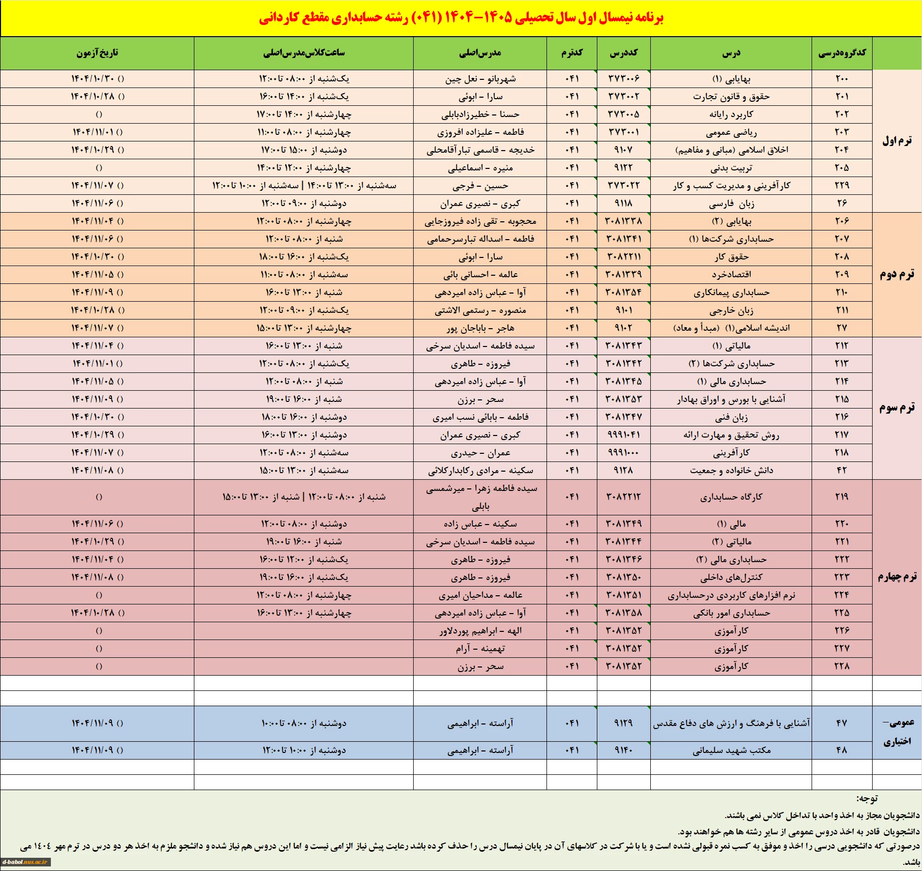 برنامه دروس نیمسال اول سال تحصیلی 1405-1404 6