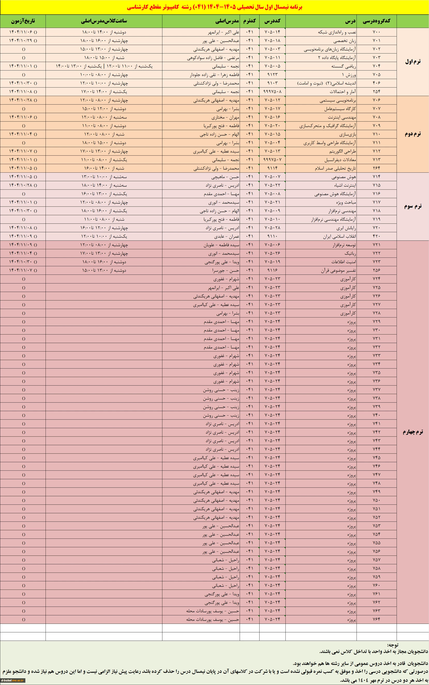 برنامه دروس نیمسال اول سال تحصیلی 1405-1404 12