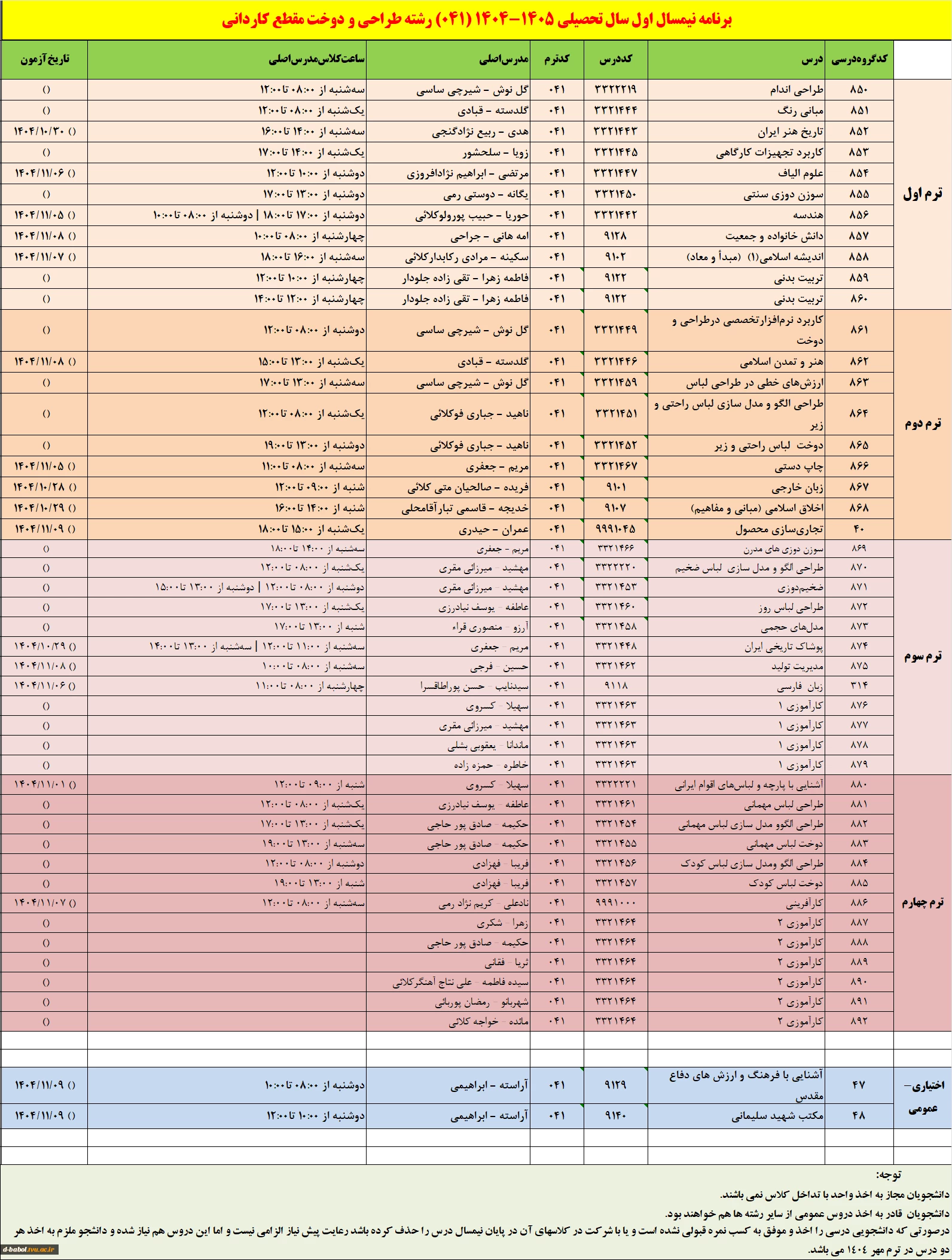 برنامه دروس نیمسال اول سال تحصیلی 1405-1404 15