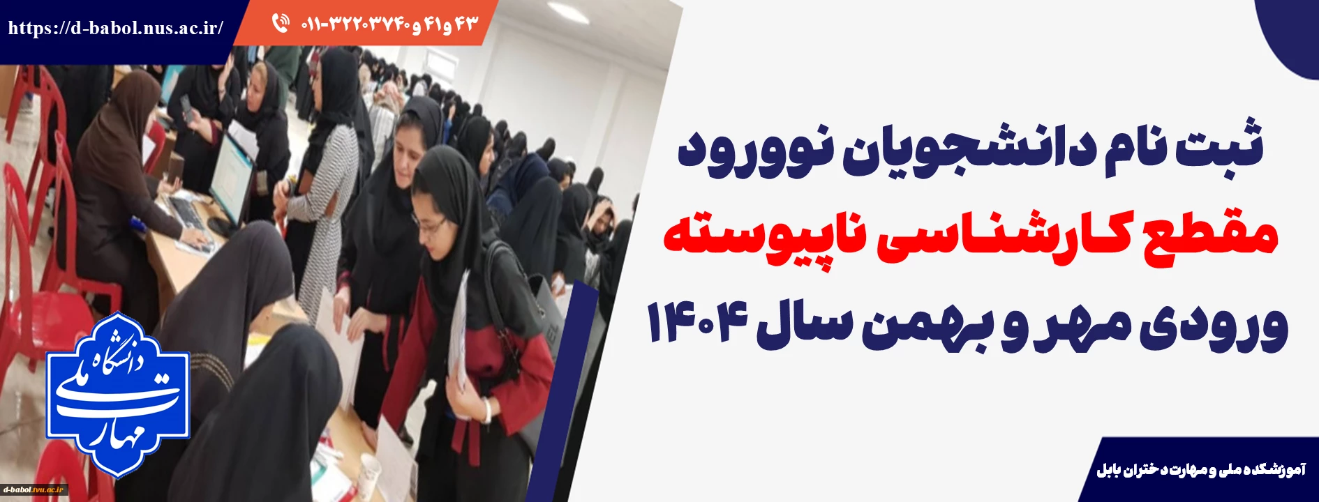 ثبت نام دانشجویان نوورود مقطع کارشناسی ناپیوسته ورودی مهر و بهمن سال 1404