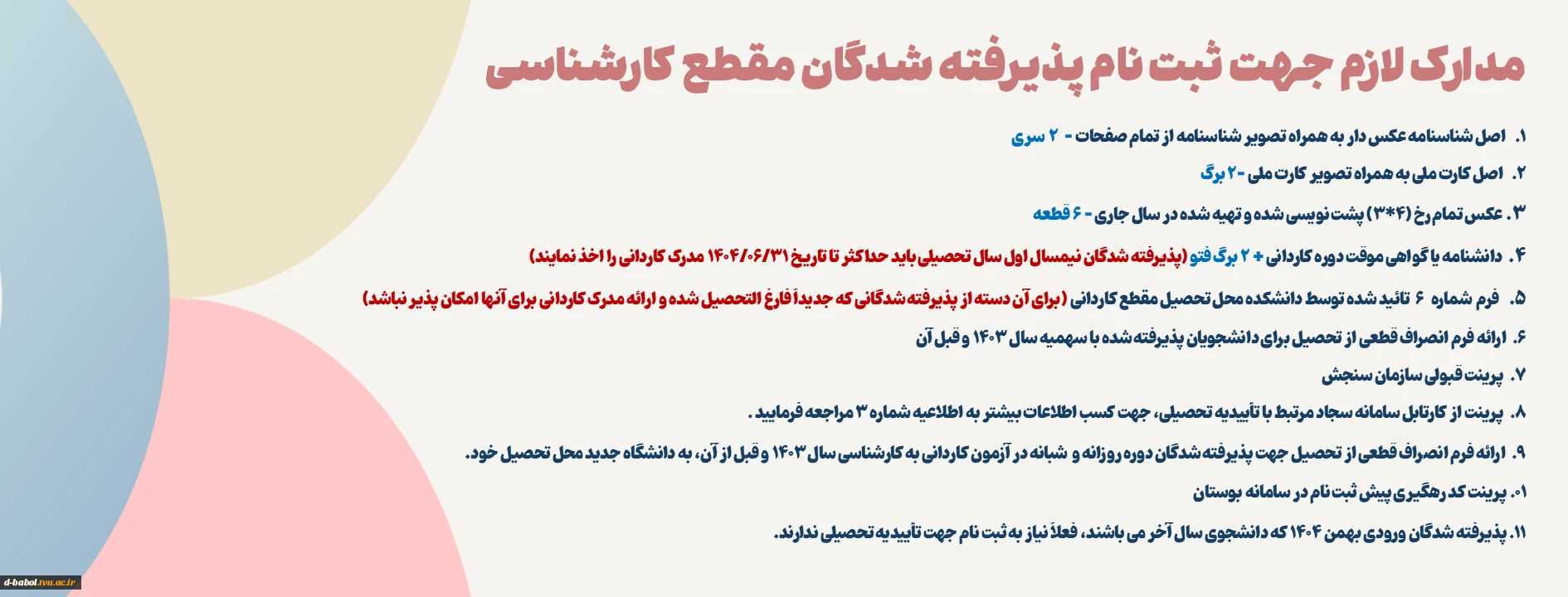 امتیاز دهید : ثبت نام دانشجویان نوورود مقطع کارشناسی ناپیوسته ورودی مهر و بهمن سال 1404 6 یکشنبه 13 مهر 1404 ساعت 12:27