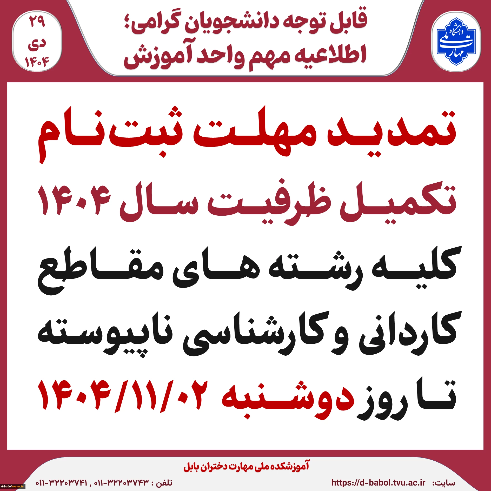 قابل توجه متقاضیان ثبت نام تکمیل ظرفیت 1404 2